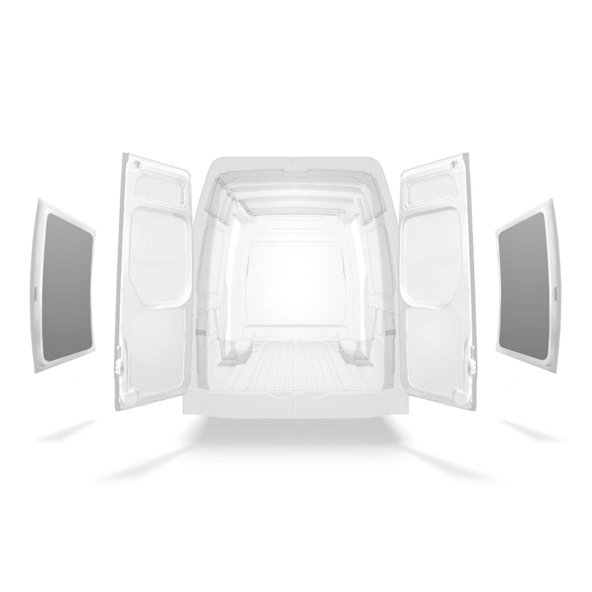 Revestimento completo leve para a porta lateral de um Mercedes Sprinter com duplas portas laterais. O revestimento irá proteger o interior da porta e é fácil de limpar.