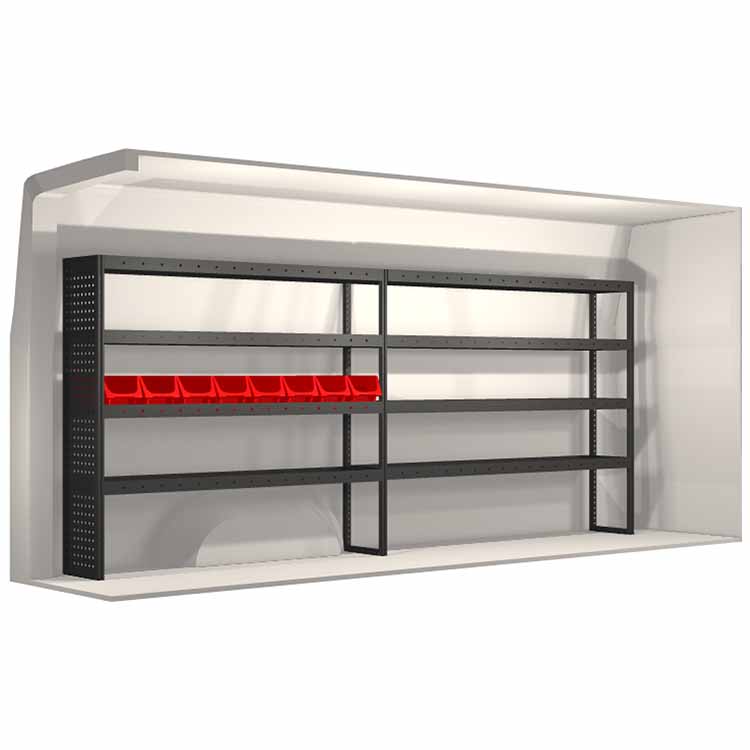 The racking has been specially designed to ensure the optimum fit to the vehicle, as well as the best possible functionality and safety. It has been developed for professional use, is flexible and is intended for service jobs in various types of business. All shelves are equipped with rubber mats, and all drawers with foam plastic liners. Assembly material is included.
