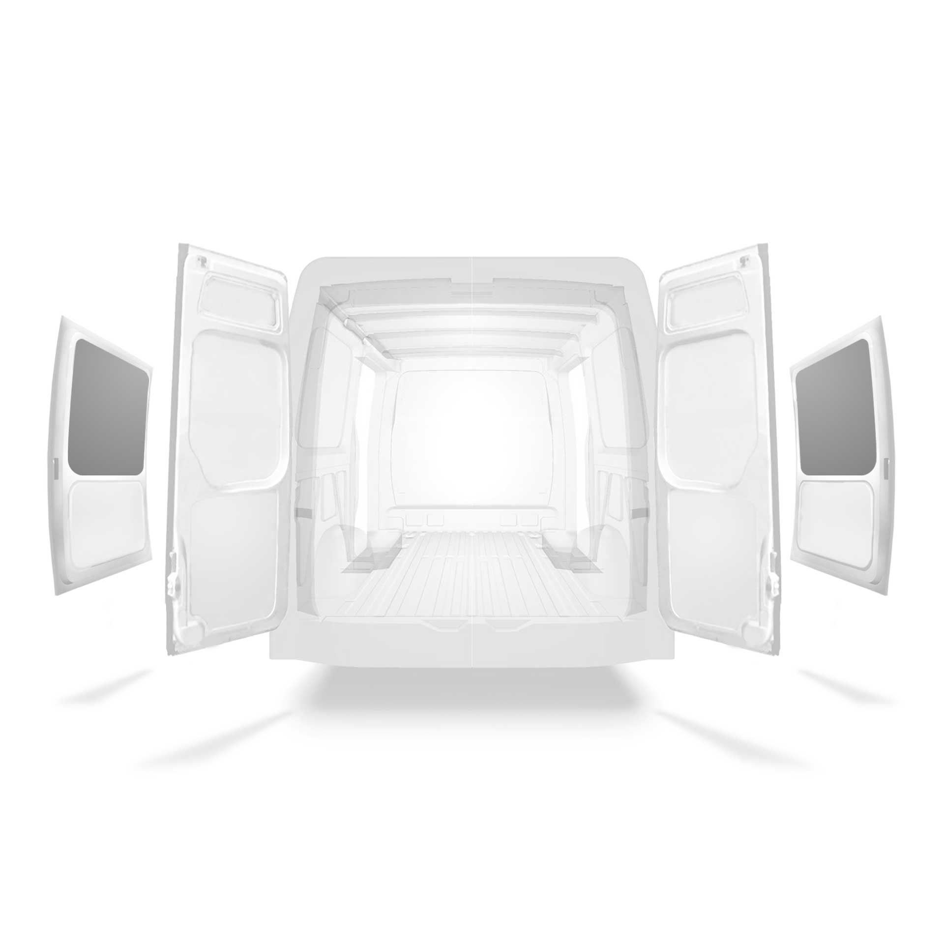 Painel de revestimento ligeiro para a porta lateral do Mercedes Sprinter com dupla porta lateral. O revestimento reduz o desgaste do interior e ajuda a manter o valor residual do veículo.