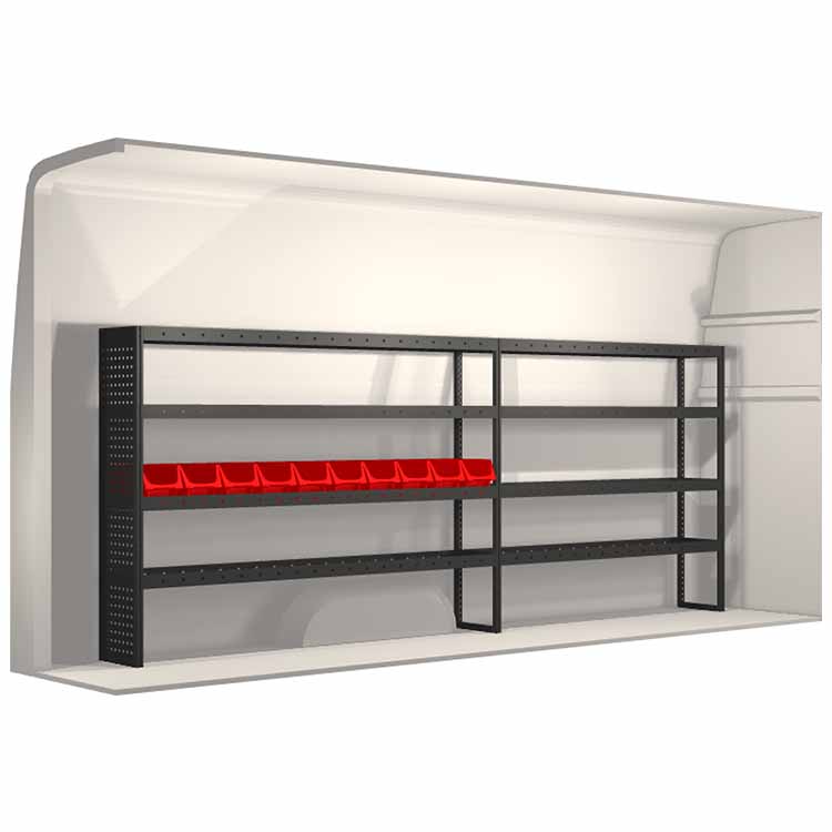 The racking has been specially designed to ensure the optimum fit to the vehicle, as well as the best possible functionality and safety. It has been developed for professional use, is flexible and is intended for service jobs in various types of business. All shelves are equipped with rubber mats, and all drawers with foam plastic liners. Assembly material is included.