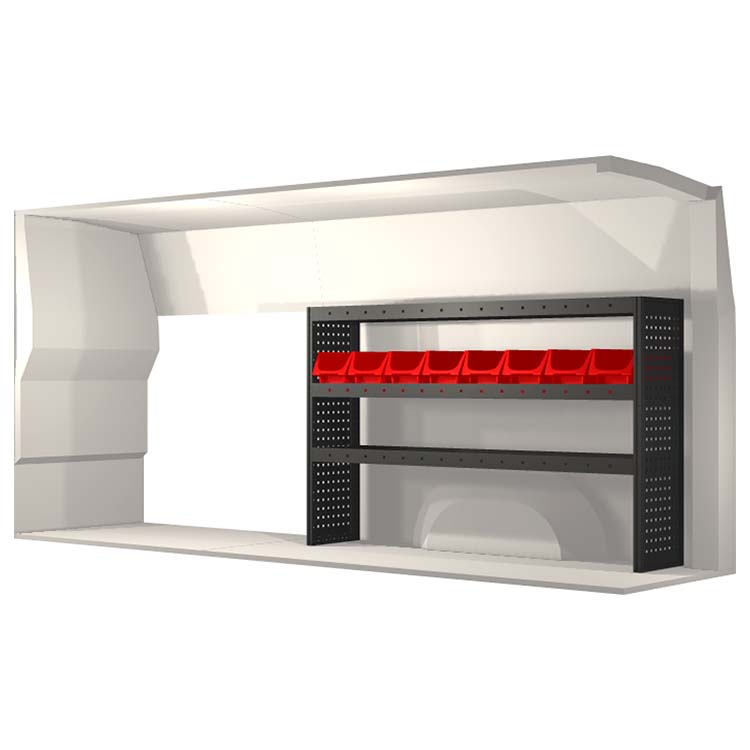 The racking has been specially designed to ensure the optimum fit to the vehicle, as well as the best possible functionality and safety. It has been developed for professional use, is flexible and is intended for service jobs in various types of business. All shelves are equipped with rubber mats, and all drawers with foam plastic liners. Assembly material is included.