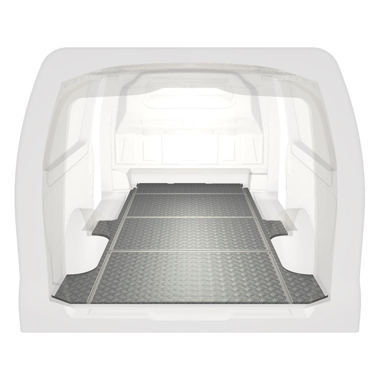 Ligeiro e robusto piso de carrinha com calhas transversais para Mercedes Vito com chapa de alumÃnio antiderrapante e calhas de carga (longitudinal e transversal) para instalação rápida e segura dos sistema de transporte e outros acessórios.