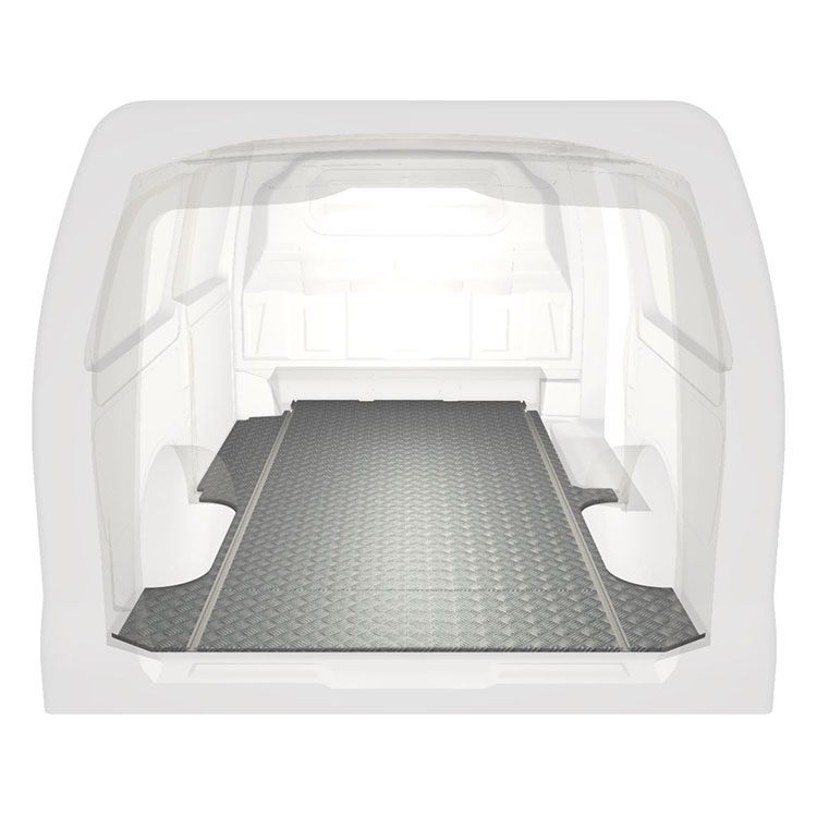 Ligeiro e robusto piso de carrinha extra longo para Mercedes Vito com chapa de alumÃnio antiderrapante e calhas de carga (longitudinal) para instalação rápida e segura dos sistema de transporte e outros acessórios.