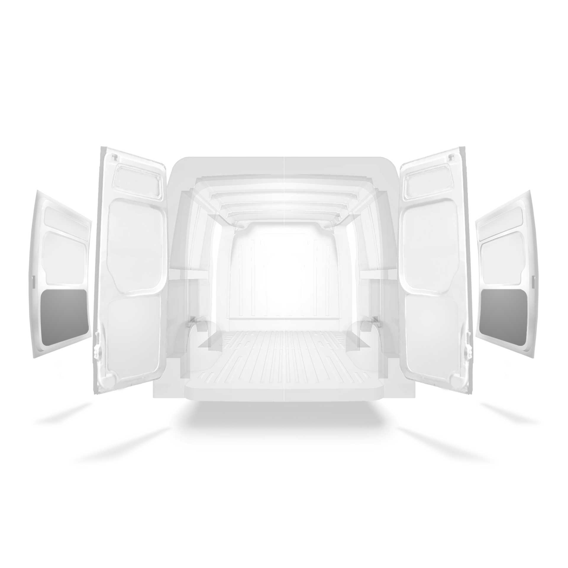 Revestimento leve para a parte inferior da porta lateral de um Renault Master / Opel Movano / Nissan NV400 com duplas portas laterais. O revestimento irá reduzir o desgaste do interior e ajudar a manter o valor residual do veículo.