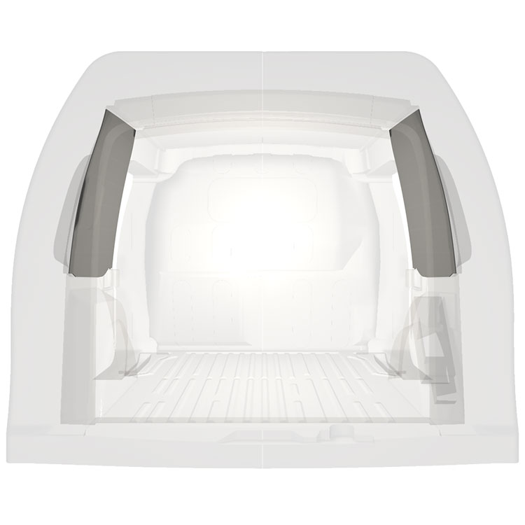 Para otimizar o peso, o revestimento pré-cortado é fabricado para caber no espaço entre os feixes do veículo, garantindo que não são intrusivos e que maximizam o espaço.