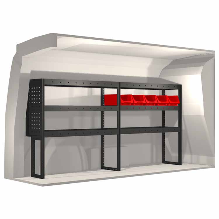 The racking has been specially designed to ensure the optimum fit to the vehicle, as well as the best possible functionality and safety. It has been developed for professional use, is flexible and is intended for service jobs in various types of business. All shelves are equipped with rubber mats, and all drawers with foam plastic liners. Assembly material is included.