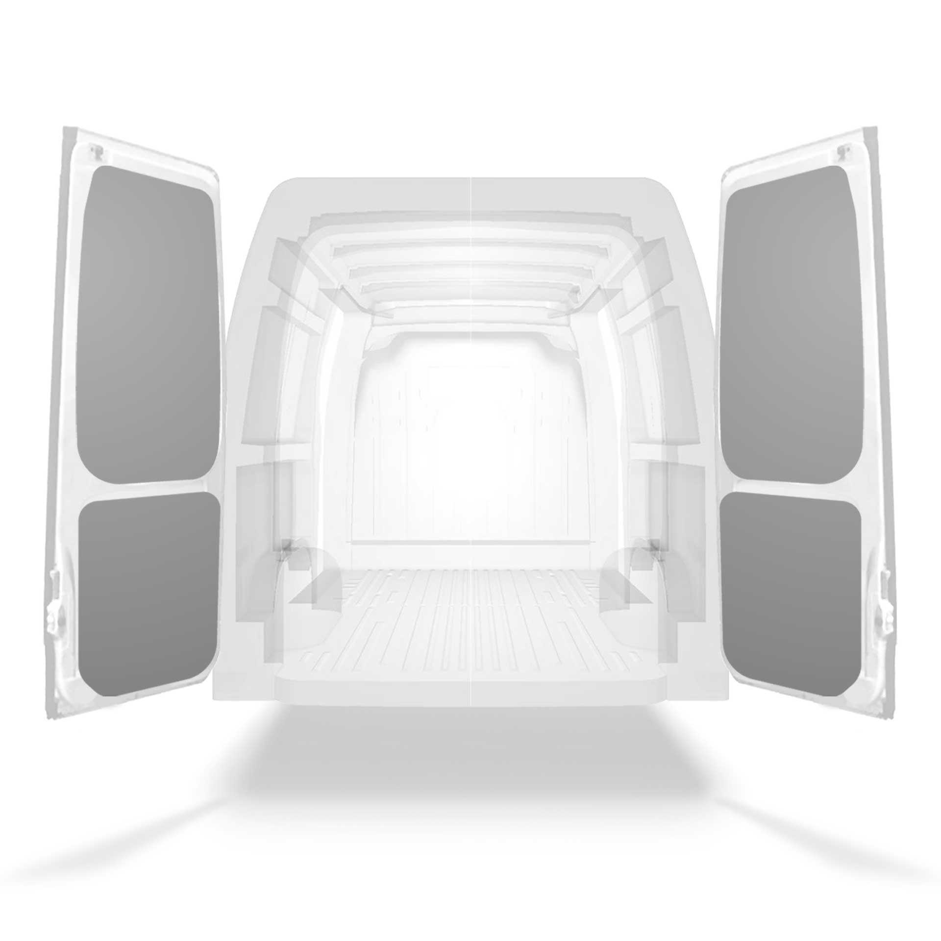 Painel de revestimento ligeiro para porta traseira de Renault Master / Opel Movano / Nissan NV400 com portas duplas. Concebidos para criar um acabamento profissional no interior, os revestimentos para portas protegem a carrinha e são fáceis de limpar.