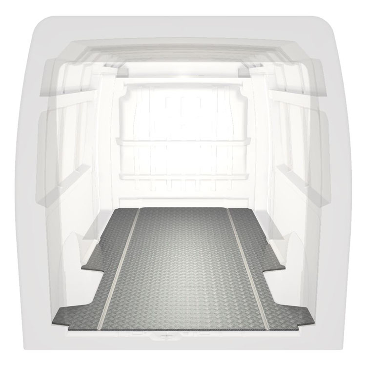 Ligeiro e robusto piso de carrinha padrão para Citroën Jumper / Peugeot Boxer / Fiat Ducato com chapa de alumÃnio antiderrapante e calhas de carga (longitudinal) para instalação rápida e segura do sistemas de transporte e outros acessórios.