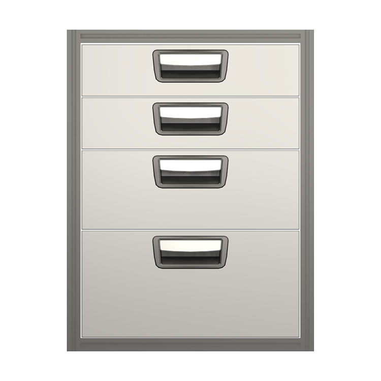 Cada gaveta está equipada de série com corrediças de esferas e tem uma capacidade de carga de 30 kg, com um máximo de 100 kg por módulo de gavetas.