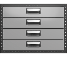 Each drawer is fitted with ball bearing runners as standard, and has a load capacity of 30 kg with a maximum of 100 kg per drawer unit. The drawers are fully extendable and equipped with stoppers. For maximum utility, the drawer unit can be equipped with accessories such as foam plastic liners, plastic inserts and dividers. To help optimize the weight, cover panels and tool boards are optional.