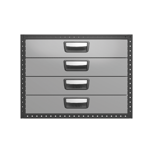Each drawer is fitted with ball bearing runners as standard, and has a load capacity of 30 kg with a maximum of 100 kg per drawer unit. The drawers are fully extendable and equipped with stoppers. For maximum utility, the drawer unit can be equipped with accessories such as foam plastic liners, plastic inserts and dividers. To help optimize the weight, cover panels and tool boards are optional.