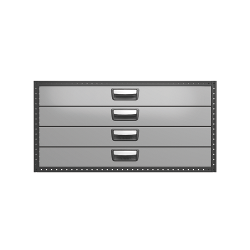 Each drawer is fitted with ball bearing runners as standard, and has a load capacity of 30 kg with a maximum of 100 kg per drawer unit. The drawers are fully extendable and equipped with stoppers. For maximum utility, the drawer unit can be equipped with accessories such as foam plastic liners, plastic inserts and dividers. To help optimize the weight, cover panels and tool boards are optional.