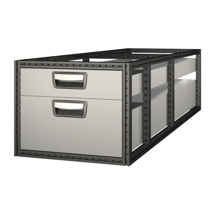Todas as gavetas têm dois pinos de fecho para manter a gaveta no lugar durante a condução. Além disso, todas as gavetas estão equipadas com um Painel de Retenção de Crash Restraint Panel (CRP), uma caracterÃstica que impede que cargas pesadas sejam impelidas para a frente em caso de acidente.