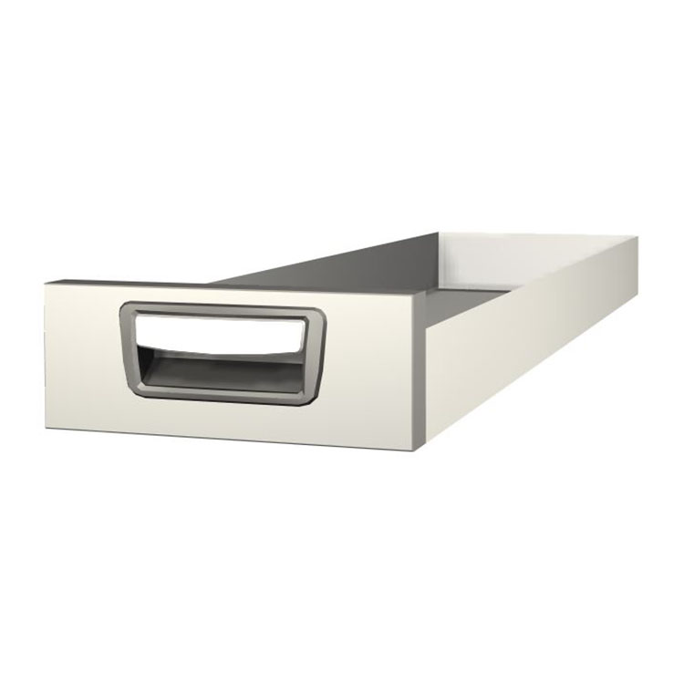 Gaveta extra-longa robusta para montagem numa armação de gaveta. A gaveta, feita de alumínio, tem rolamentos de esferas como padrão e a mistura de rolamentos fixos e flexíveis torna a gaveta estável e fácil de operar.
