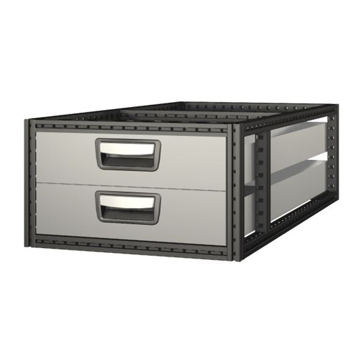 Todas as gavetas têm dois pinos de fecho para manter a gaveta no lugar durante a condução. Além disso, todas as gavetas estão equipadas com um Painel de Retenção de Crash Restraint Panel (CRP), uma caracterÃstica que impede que cargas pesadas sejam impelidas para a frente em caso de acidente.