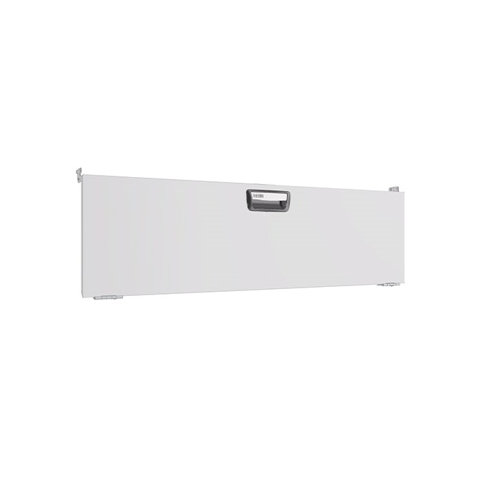 Drop down doors are fitted with gas springs on both sides that ensure smooth opening and closing. The opening angle is 90 degrees. The door pull has a built-in catch that prevents it from opening while the vehicle is in motion. The door is also suitable for wheel arch frames fitted with bench tops. When fitting doors between two shelf end supports, a mounting frame must be used.