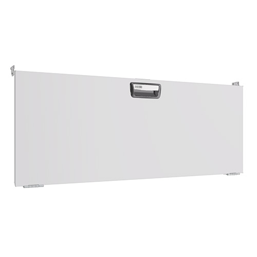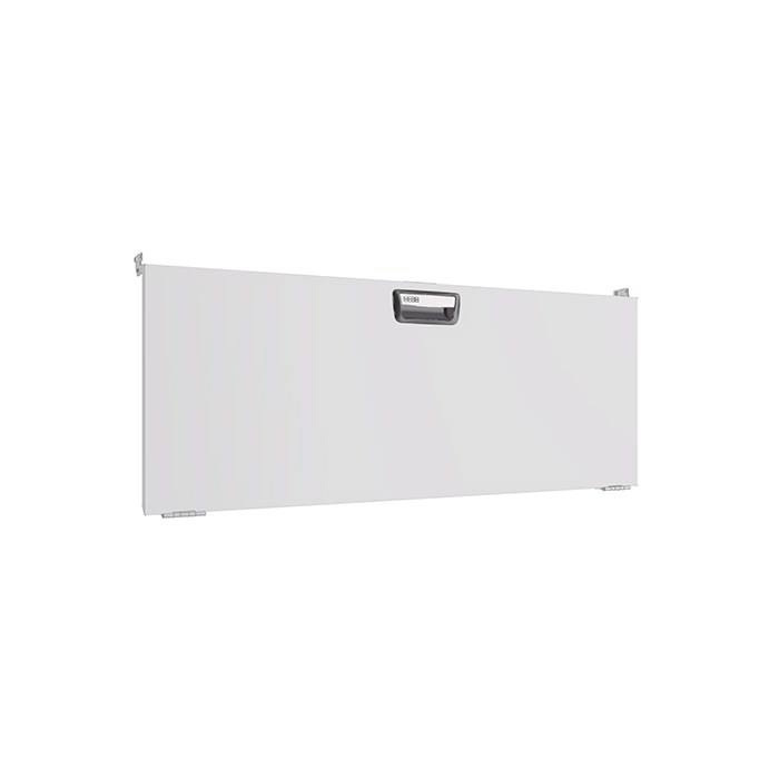 Drop down doors are fitted with gas springs on both sides that ensure smooth opening and closing. The opening angle is 90 degrees. The door pull has a built-in catch that prevents it from opening while the vehicle is in motion. The door is also suitable for wheel arch frames fitted with bench tops. When fitting doors between two shelf end supports, a mounting frame must be used.