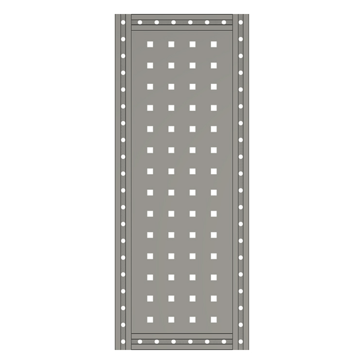 Shelf end supports with tool board are available in several heights and depths. The T-tracks integrated in the profiles are used for securing cargo, attaching accessories and for versatile surface mounting.