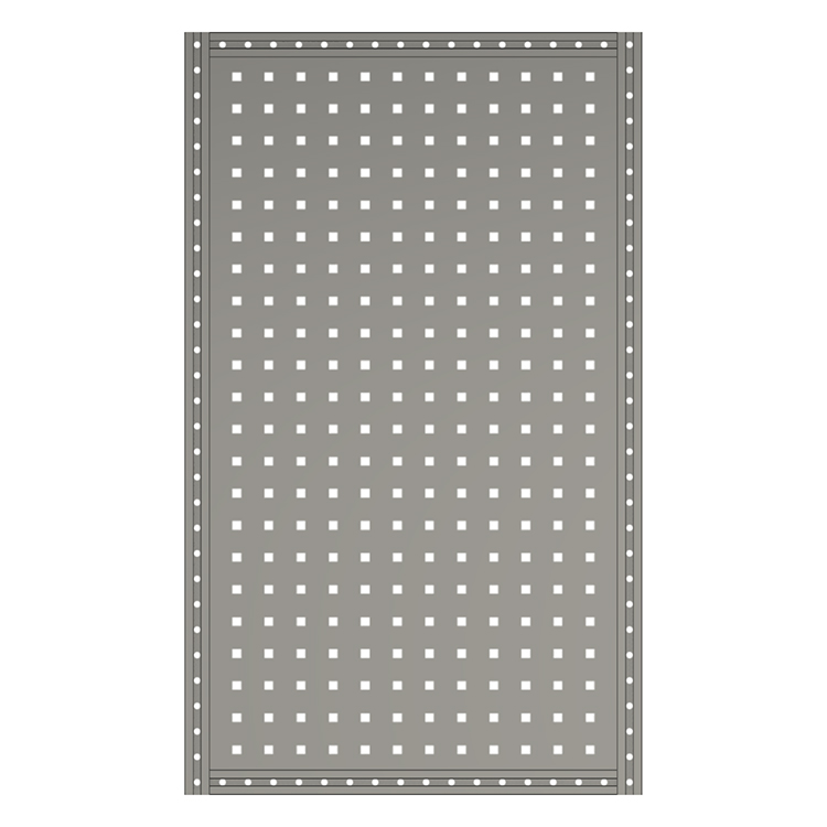 Shelf end supports with tool board are available in several heights and depths. The T-tracks integrated in the profiles are used for securing cargo, attaching accessories and for versatile surface mounting.