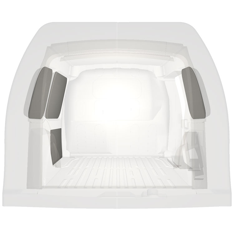 Painel de revestimento ligeiro para as paredes interiores do Mercedes Citan / Renault Kangoo com porta lateral à direita. O revestimento cria um ambiente trabalho luminoso e agradável e é fácil de limpar.