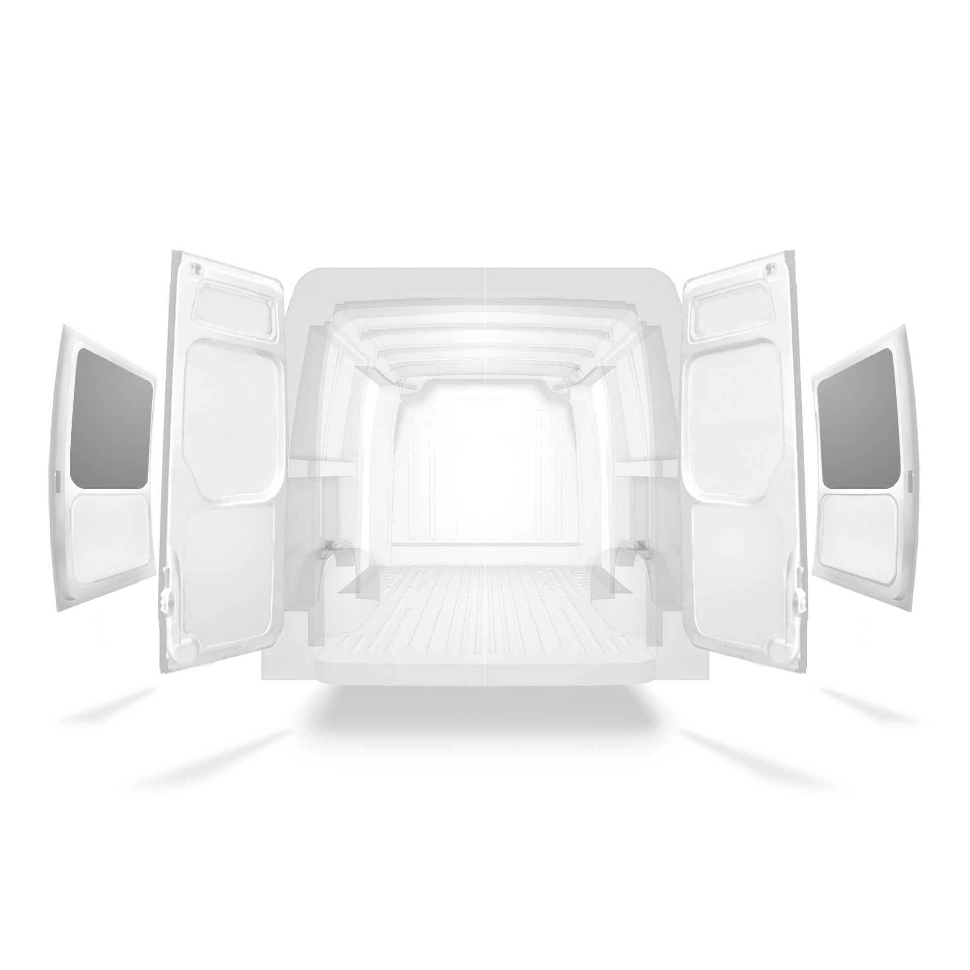 Painel de revestimento ligeiro para a porta lateral do Renault Master / Opel Movano / Nissan NV400 com dupla porta lateral. O revestimento reduz o desgaste do interior e ajuda a manter o valor residual do veículo.