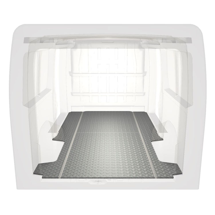 Ligeiro e robusto piso de carrinha padrão para Citroën Jumper / Peugeot Boxer / Fiat Ducato com chapa de alumÃnio antiderrapante e calhas de carga (longitudinal) para instalação rápida e segura do sistemas de transporte e outros acessórios.
