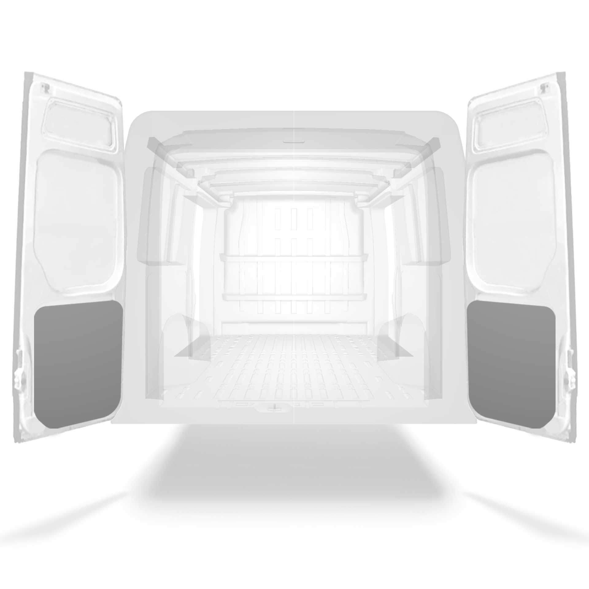 Ligeiro painel de revestimento inferior para porta traseira do Citroën Jumper / Peugeot Boxer / Fiat Ducato com portas duplas. Concebidos para criar um acabamento profissional no interior, os revestimentos para portas protegem a carrinha e são fáceis de limpar.