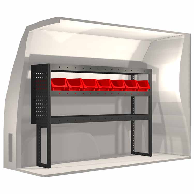 The racking has been specially designed to ensure the optimum fit to the vehicle, as well as the best possible functionality and safety. It has been developed for professional use, is flexible and is intended for service jobs in various types of business. All shelves are equipped with rubber mats, and all drawers with foam plastic liners. Assembly material is included.