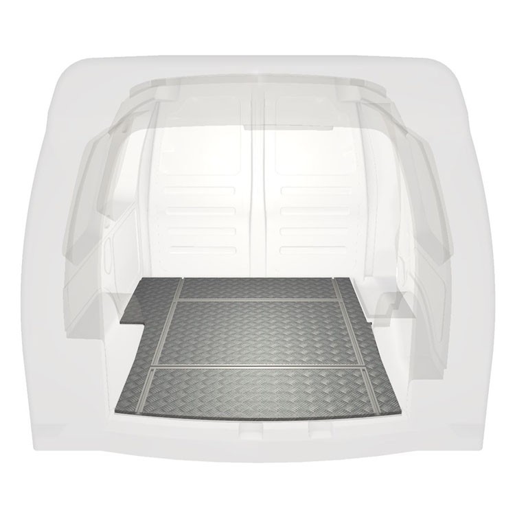 Ligeiro e robusto piso de carrinha com calhas transversais para Volkswagen Caddy com chapa de alumÃnio antiderrapante e calhas de carga (longitudinal e transversal) para instalação rápida e segura dos sistema de transporte e outros acessórios.