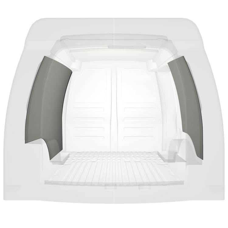 Para otimizar o peso, o revestimento pré-cortado é fabricado para caber no espaço entre os feixes do veículo, garantindo que não são intrusivos e que maximizam o espaço.