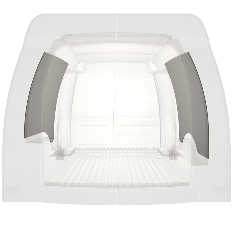 Para otimizar o peso, o revestimento pré-cortado é fabricado para caber no espaço entre os feixes do veículo, garantindo que não são intrusivos e que maximizam o espaço.