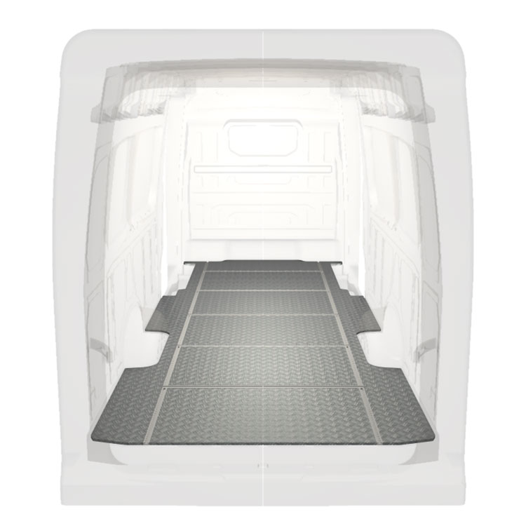 Ligeiro e robusto piso de carrinha com calhas transversais para Volkswagen Crafter / MAN TGE com chapa de alumÃnio antiderrapante e calhas de carga (longitudinal e transversal) para instalação rápida e segura dos sistema de transporte e outros acessórios.