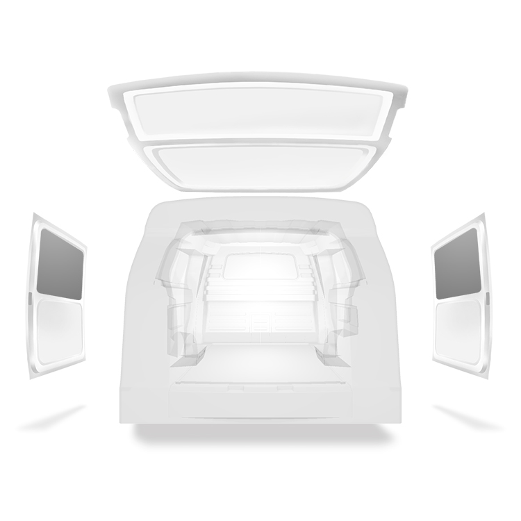 Para permitir uma conversão adicional, os revestimentos para as paredes internas, portas traseiras e tejadilho do veículo estão disponíveis em separado.
