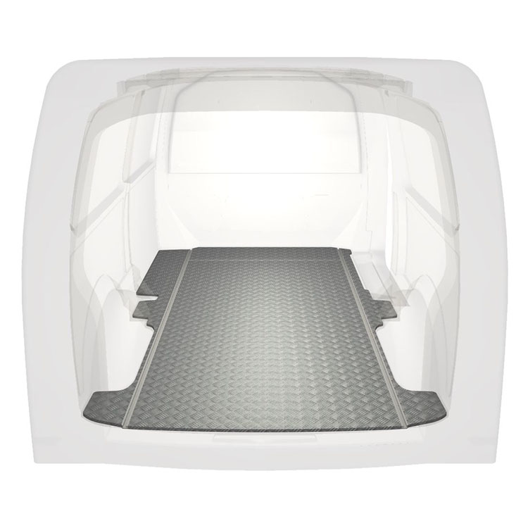 Ligeiro e robusto piso de carrinha extra longo para Volkswagen Transporter T6 com chapa de alumÃnio antiderrapante e calhas de carga (longitudinal) para instalação rápida e segura dos sistema de transporte e outros acessórios.